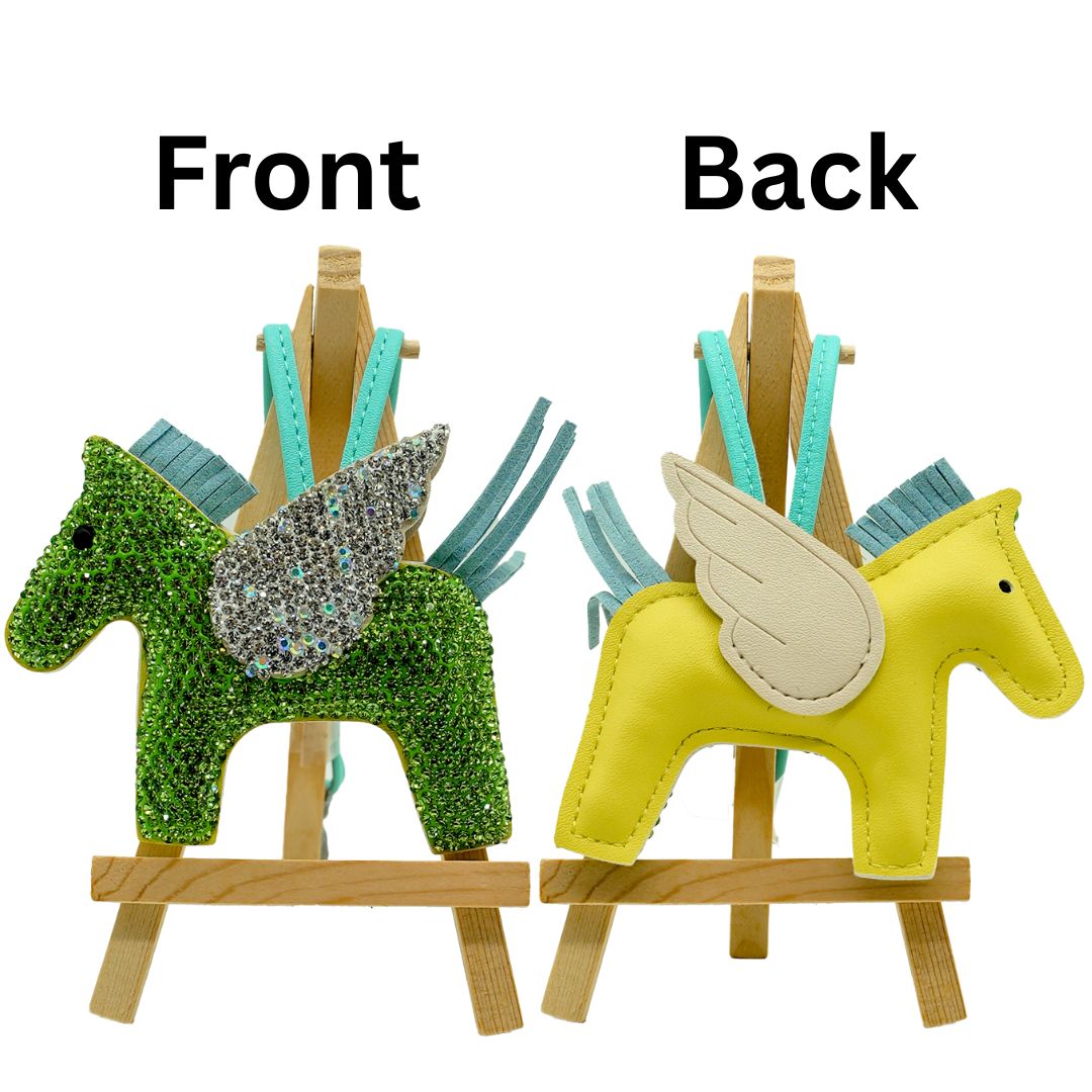 A herd of magical little horses ready to bring sparkle and joy wherever they go. Each charm features a graceful, winged horse, with one side a soft matte finish and the other adorned in twinkling rhinestone, two sides of the same enchanted spirit.